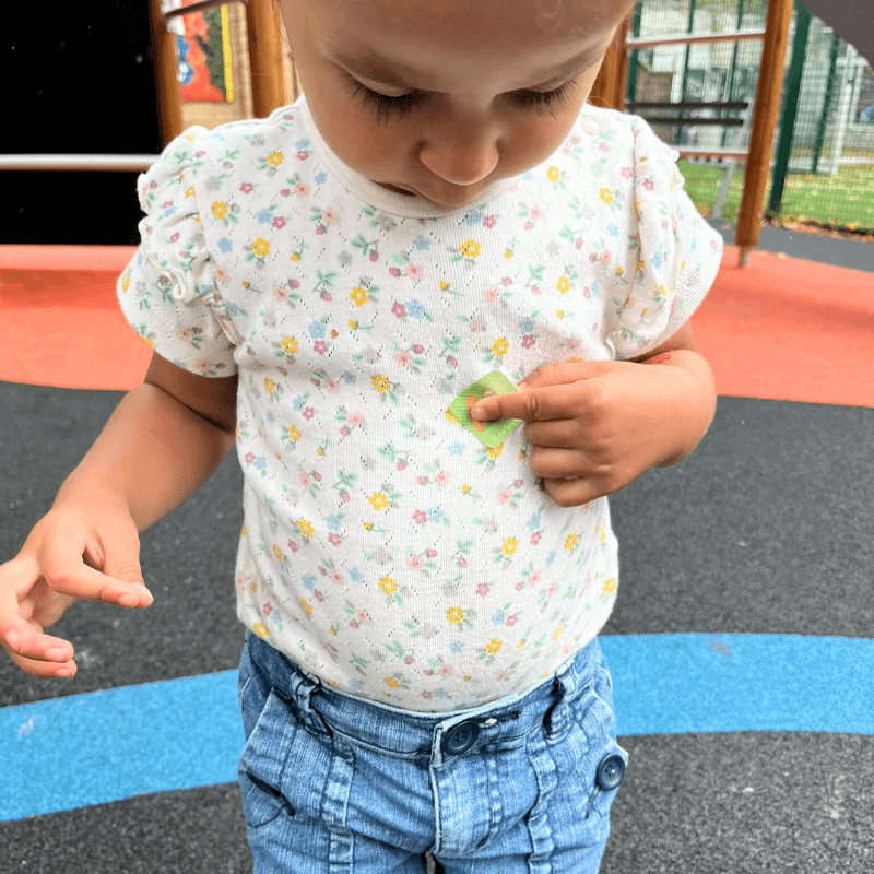 - Children 3–5 years: Apply 2 patches, one on the upper clothing and one on the lower clothing.